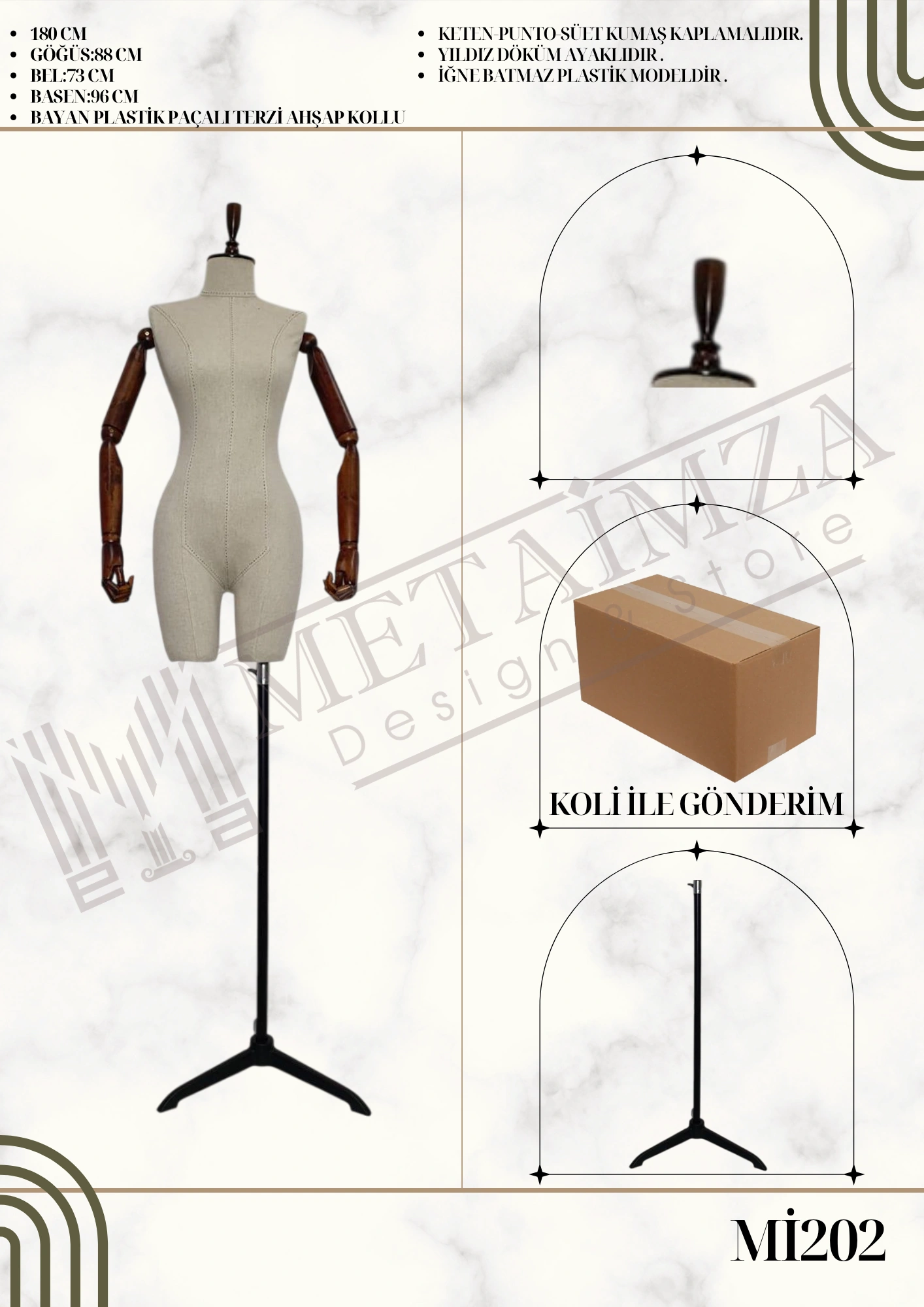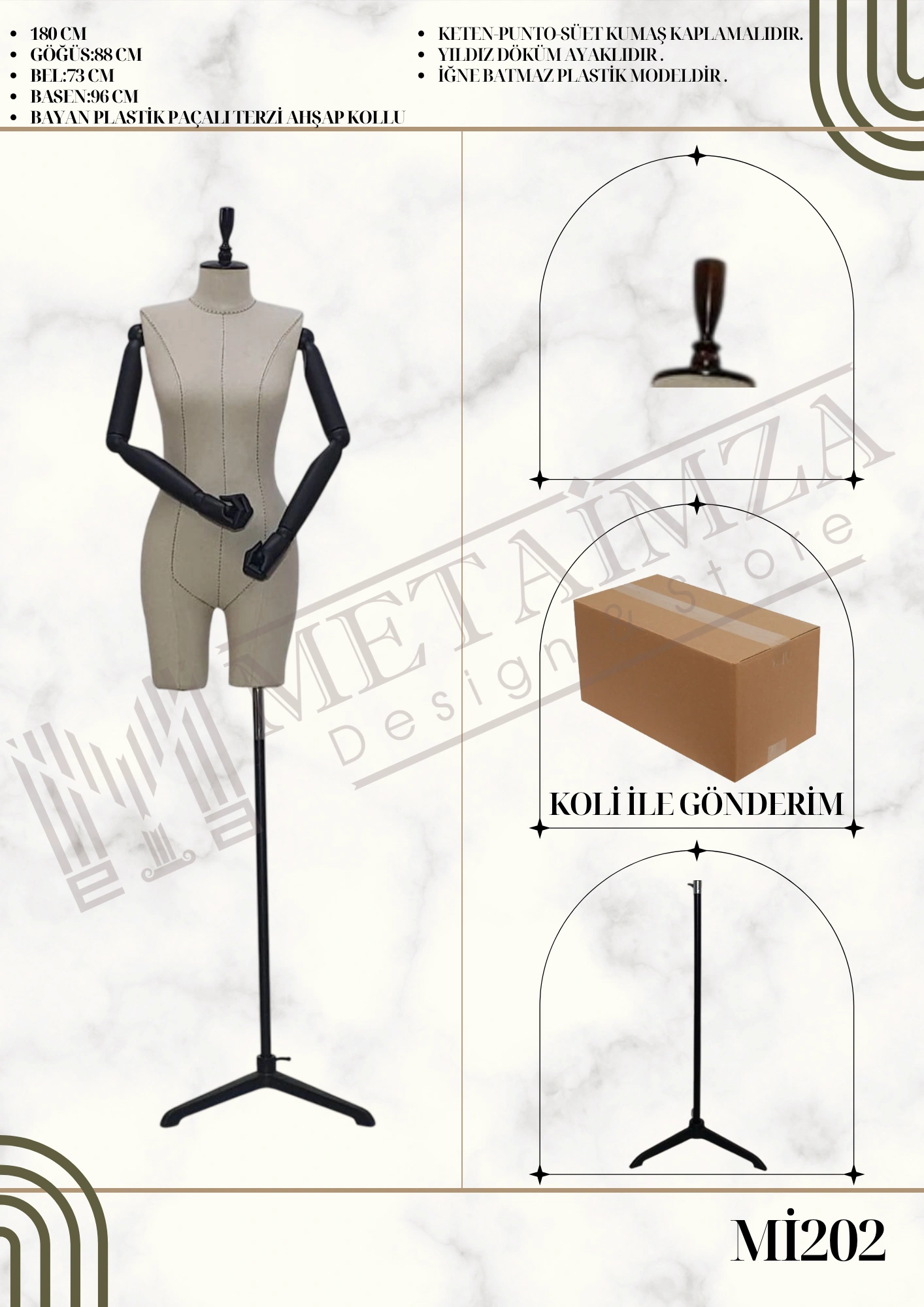 Göğüs: 88 cm, Bel: 73 cm, Basen: 96 cm, Boy: 180 cm.