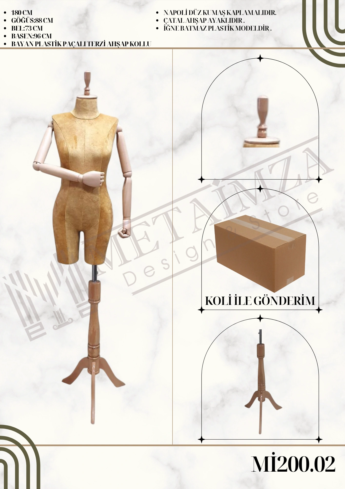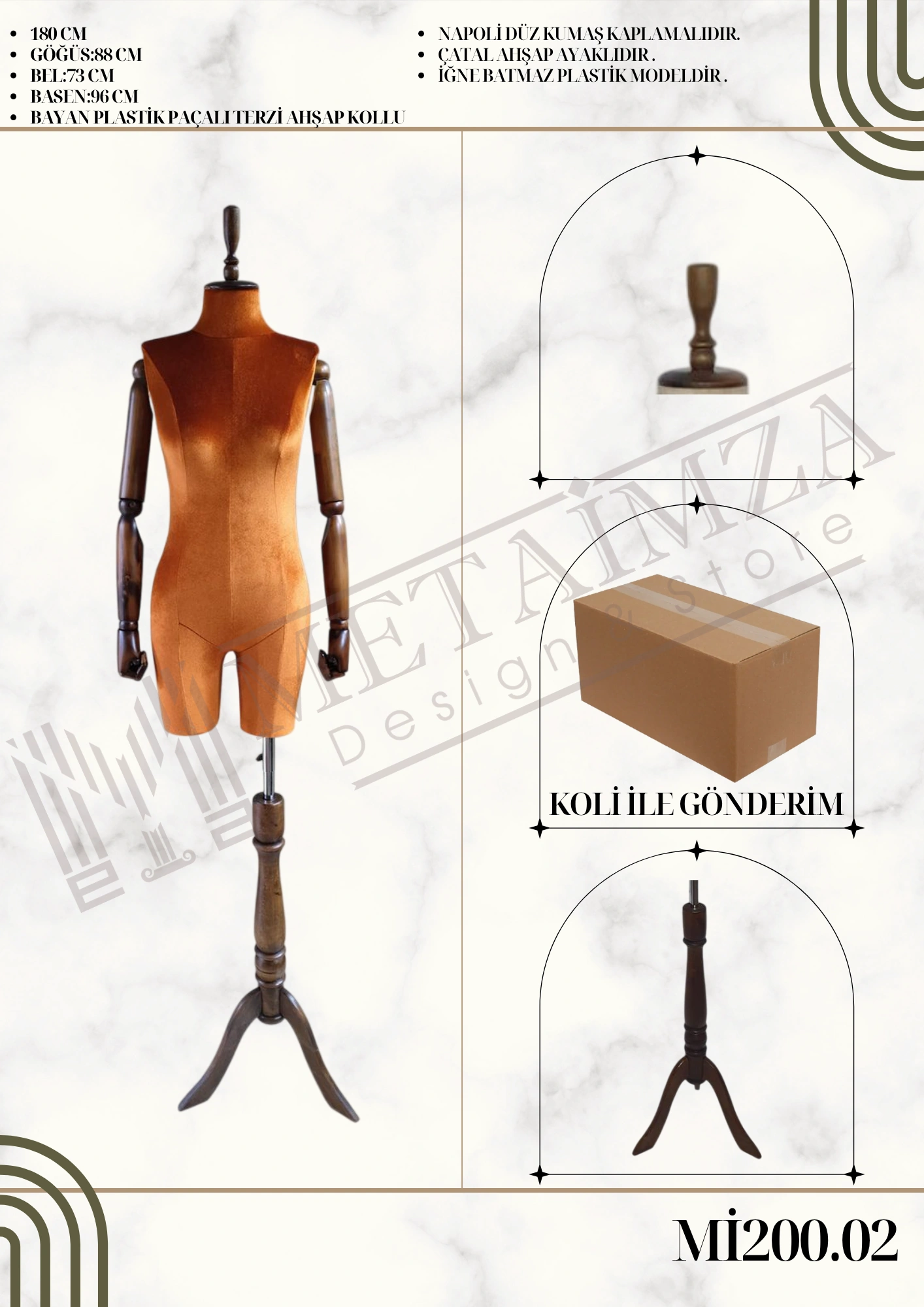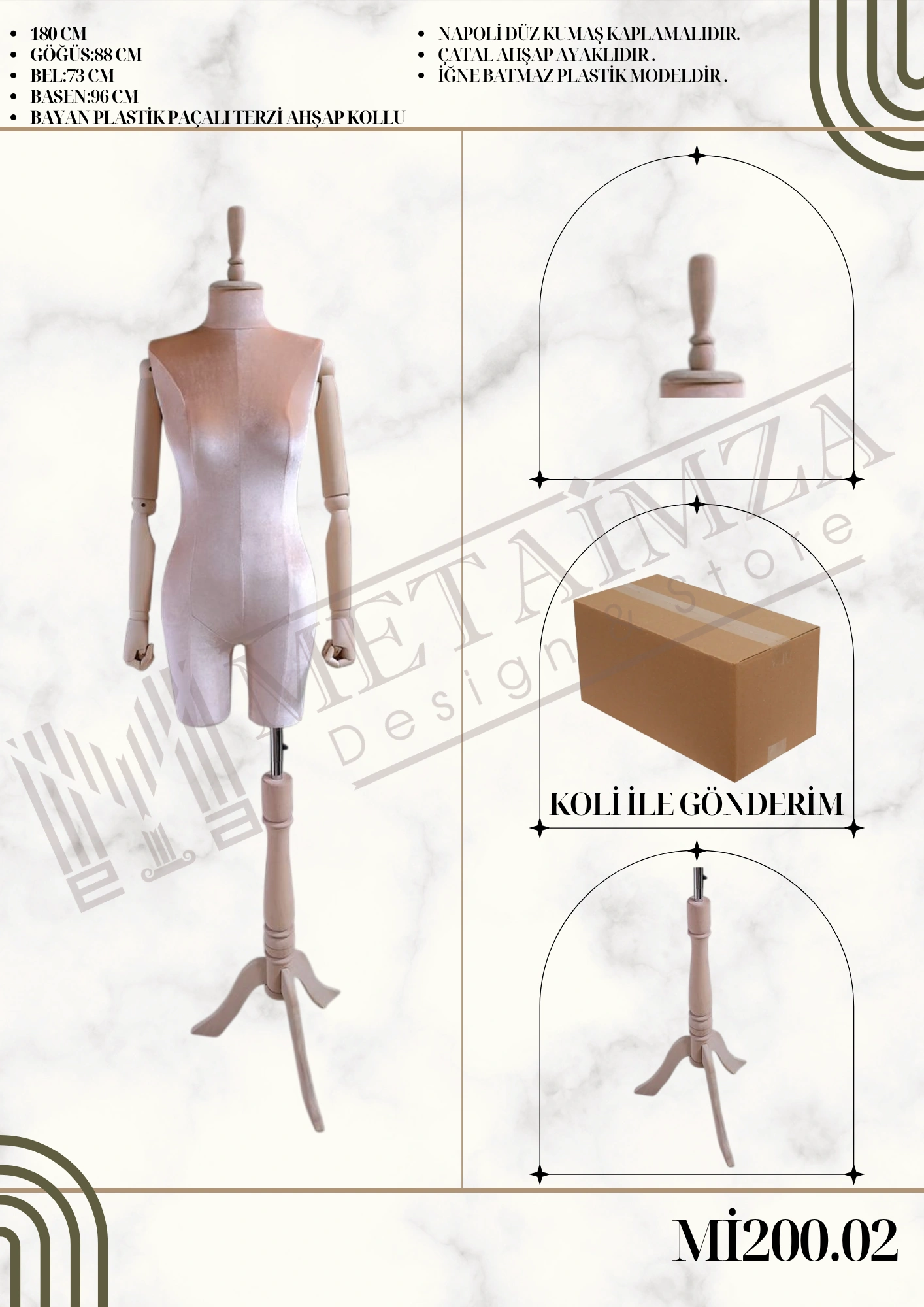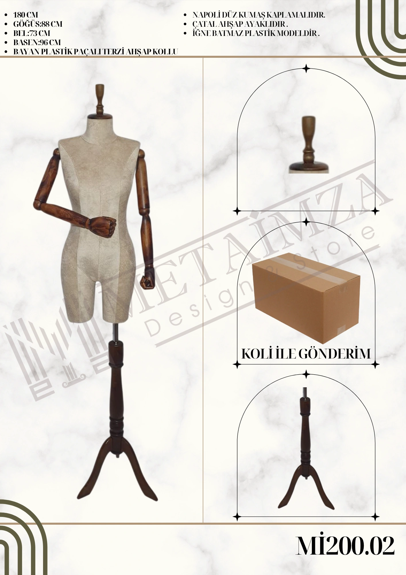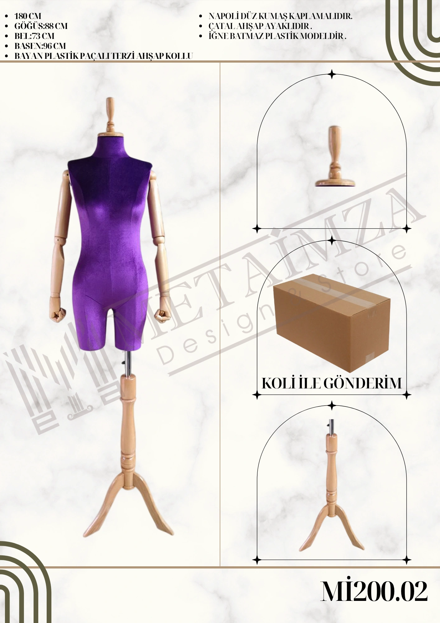Napoli düz kumaş kaplamalıdır. Çatal ahşap ayaklıdır. İğne batmaz plastik modeldir.