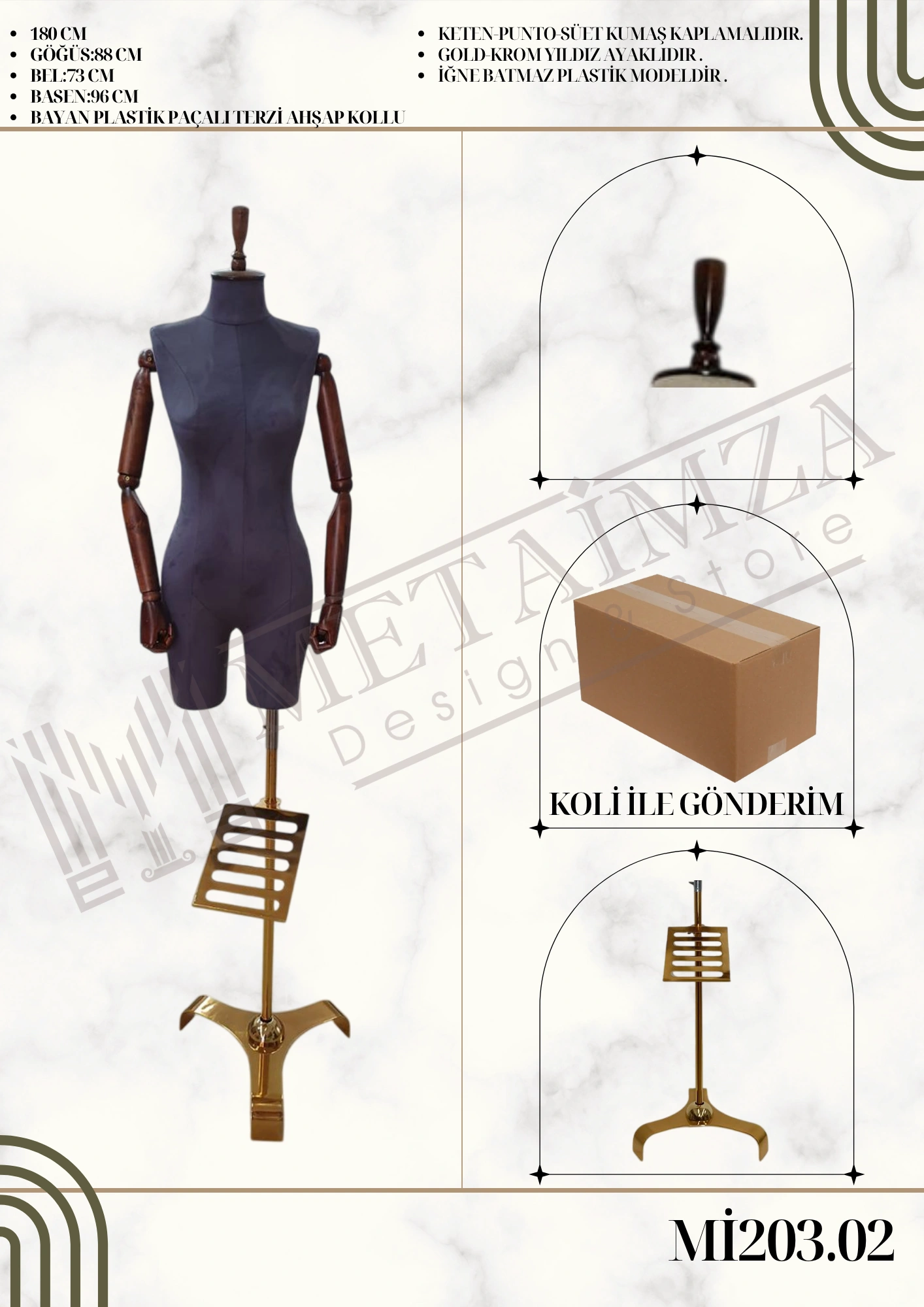 Keten-Punto süet kumaş kaplamalıdır. Gold-krom yıldız ayaklıdır. İğne batmaz plastik modeldir.