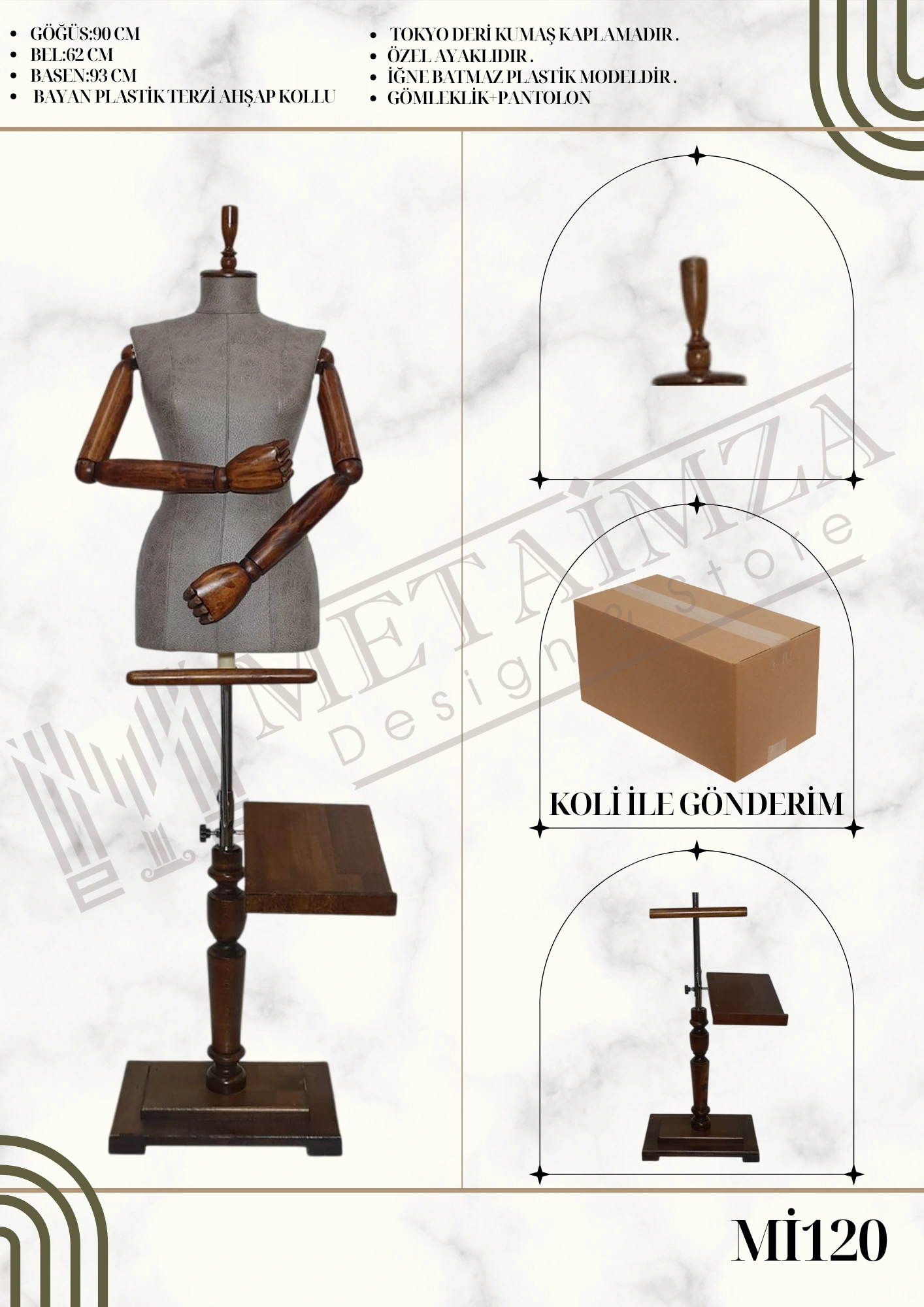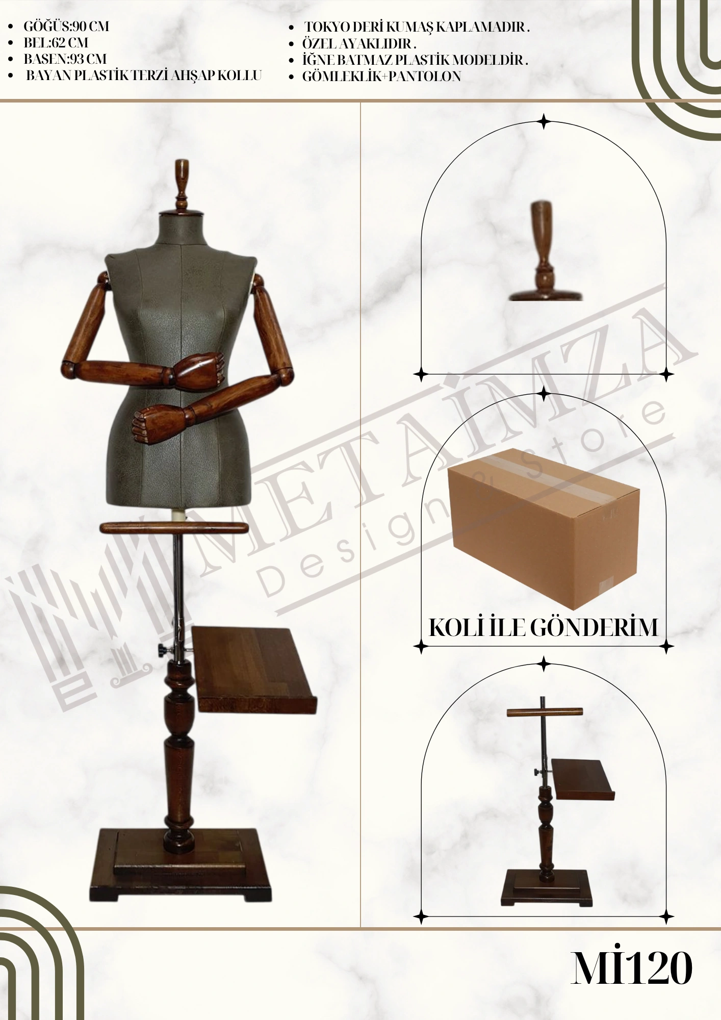 Tokyo deri kumaş kaplamalı, ahşap kollu, iğne batmaz plastik modeldir. Gömleklik + Pantolon