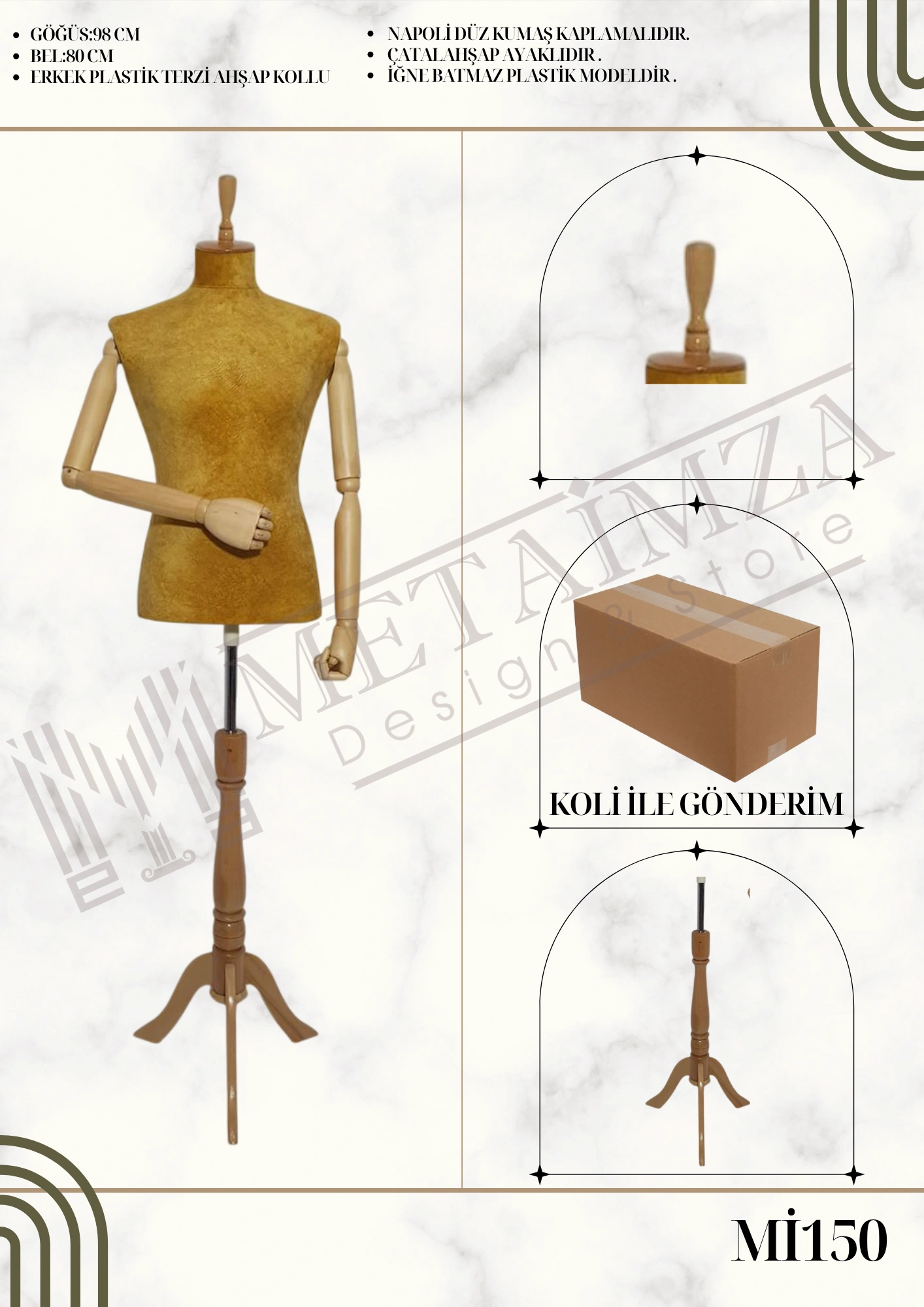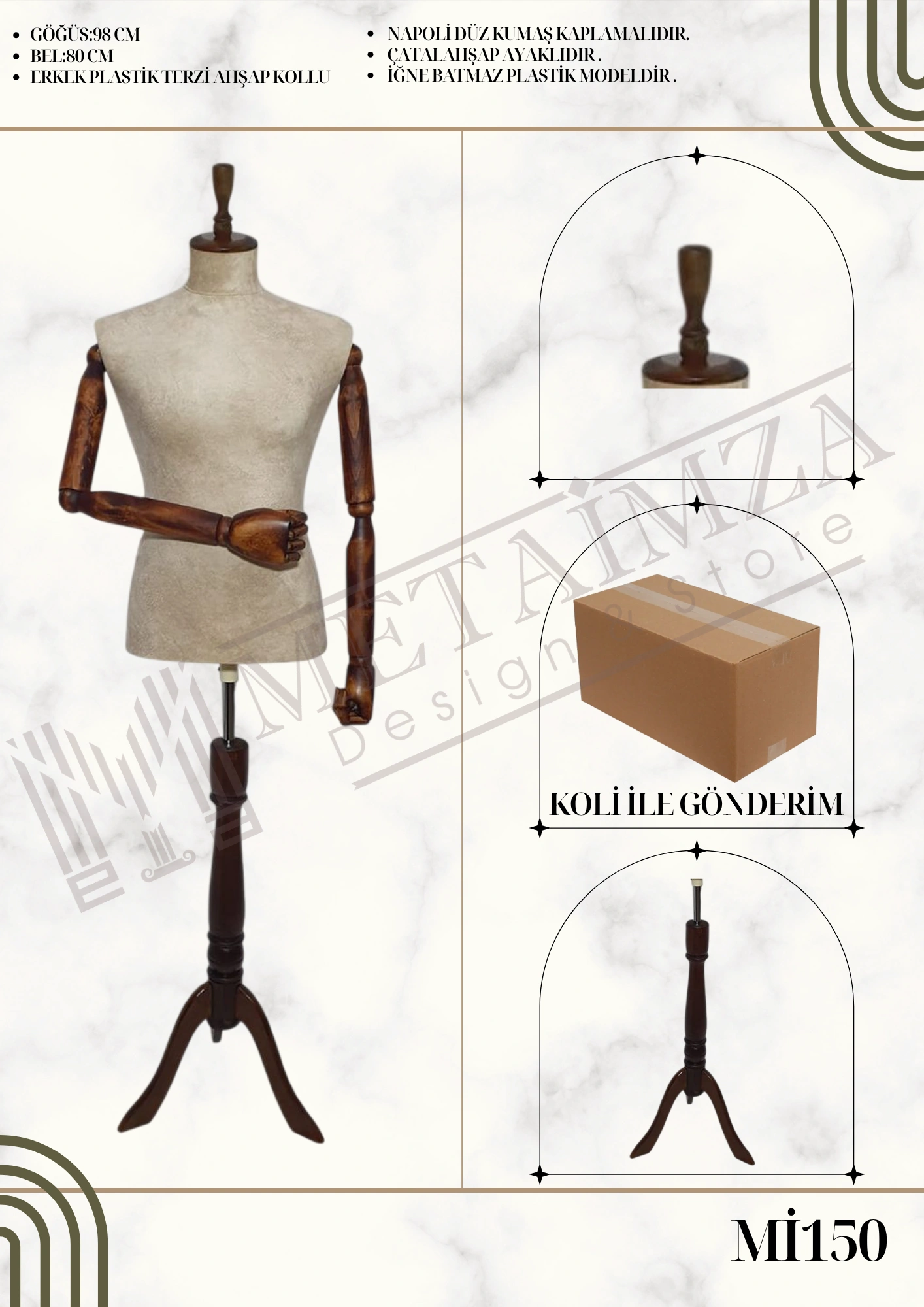 Ahşap Kollu Keten Kumaş Bayan Plastik Terzi