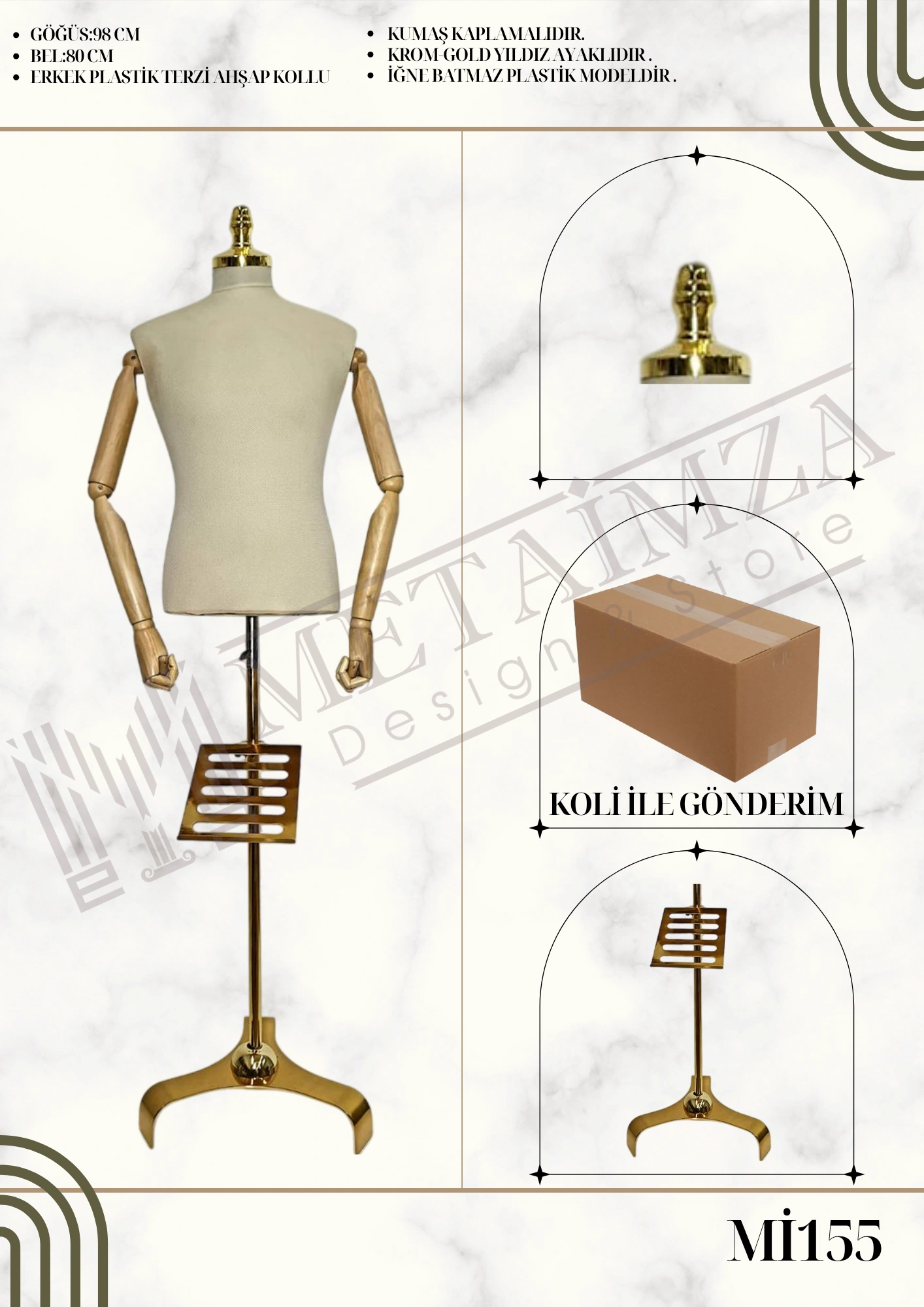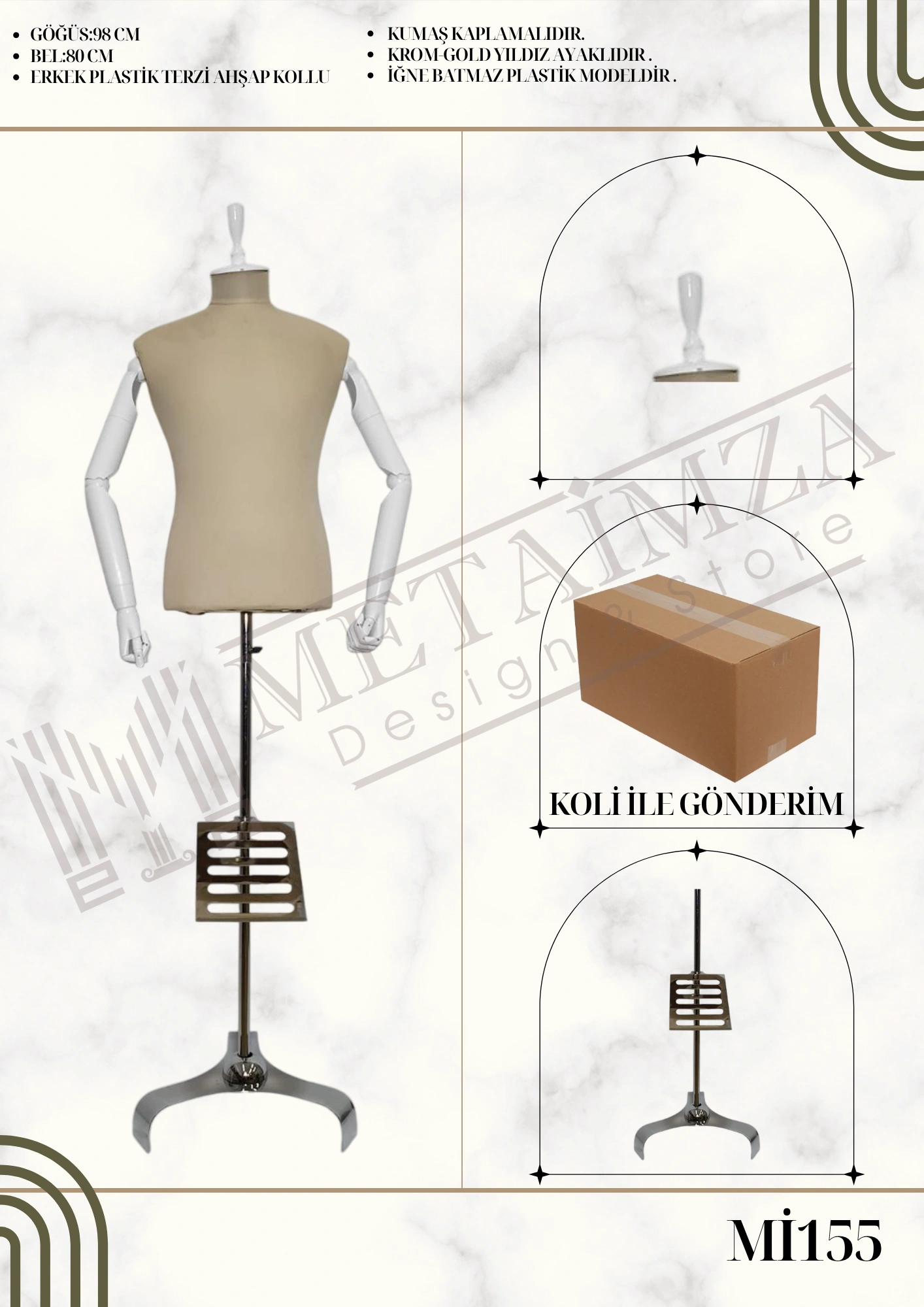 Kumaş kaplamalıdır, krom-gold yıldız ayaklıdır, iğne batmaz plastik modeldir.