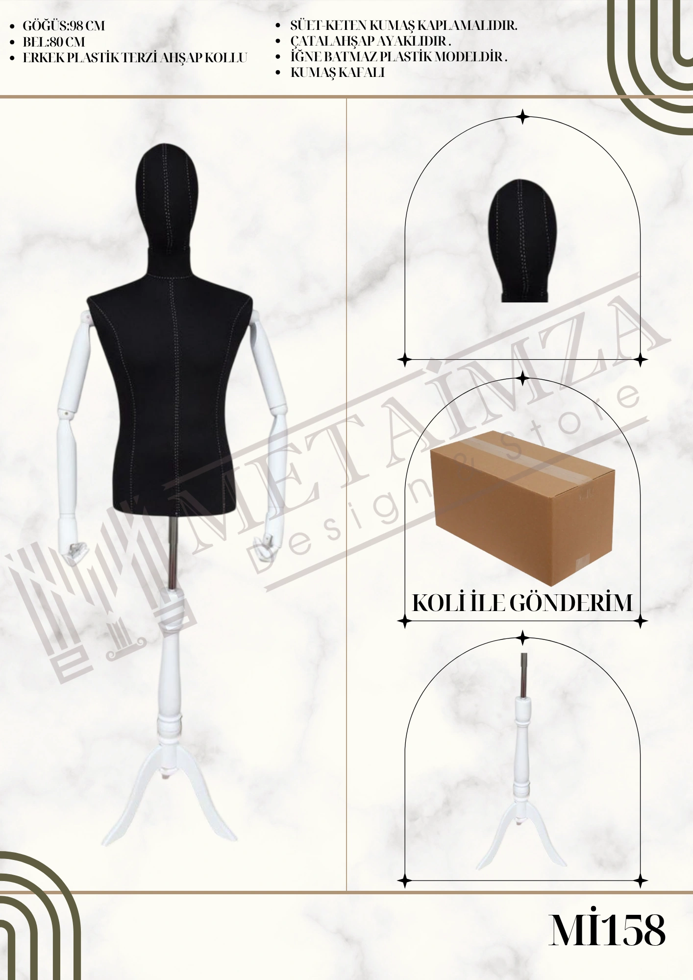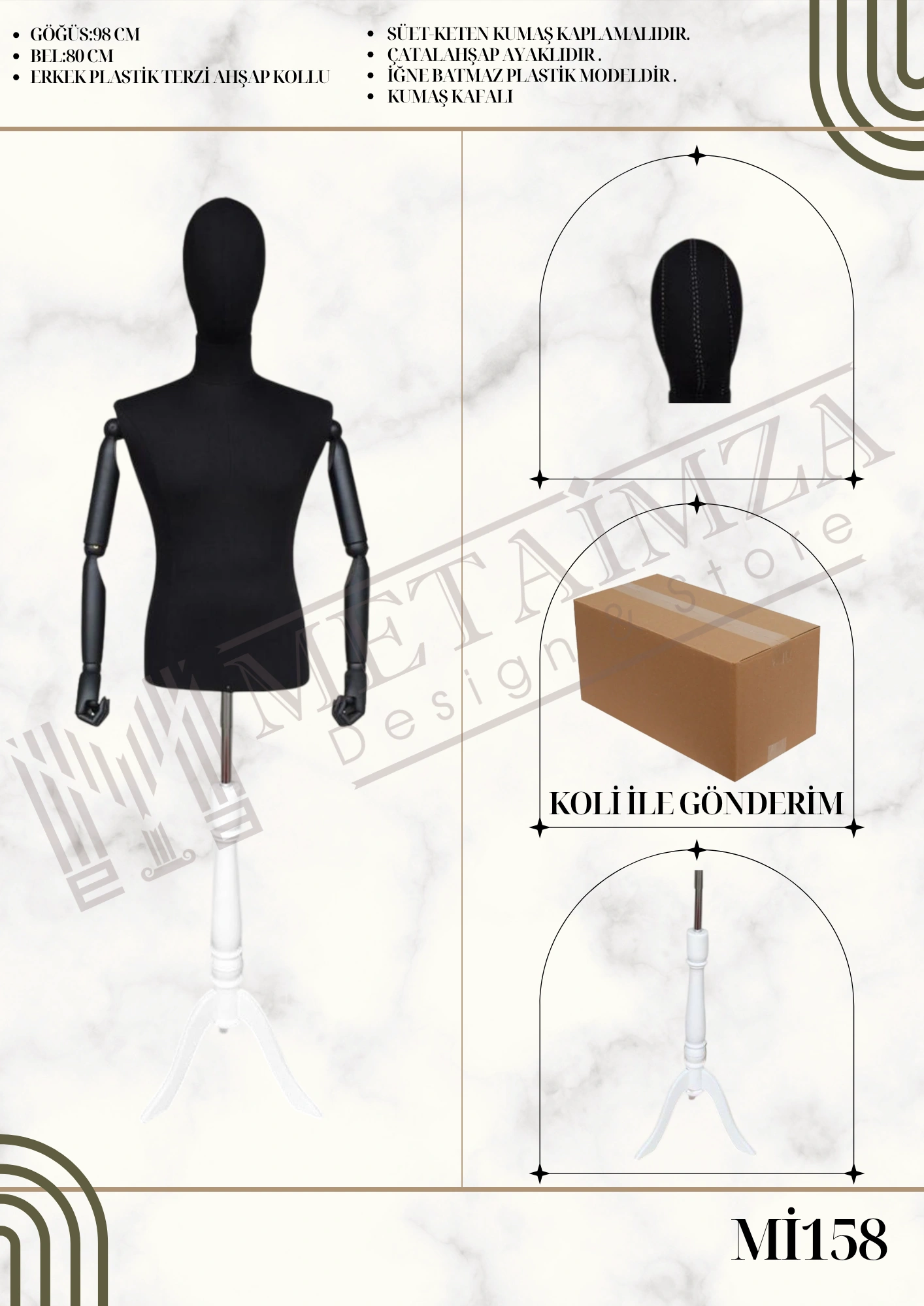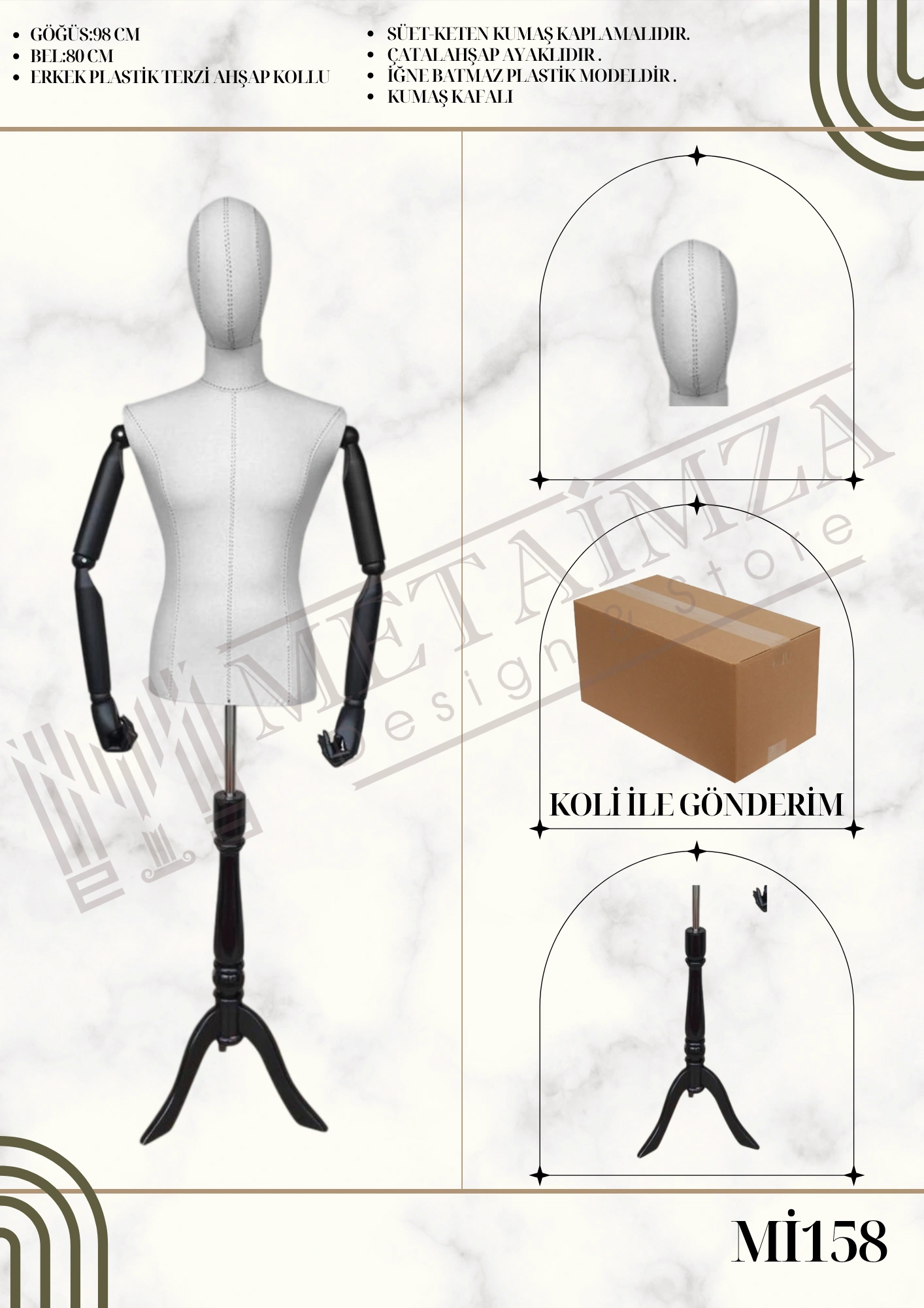 Süet-keten kumaş kaplamalıdır, çatal ahşap ayaklıdır, iğne batmaz plastik modeldir. Kumaş kafalı.