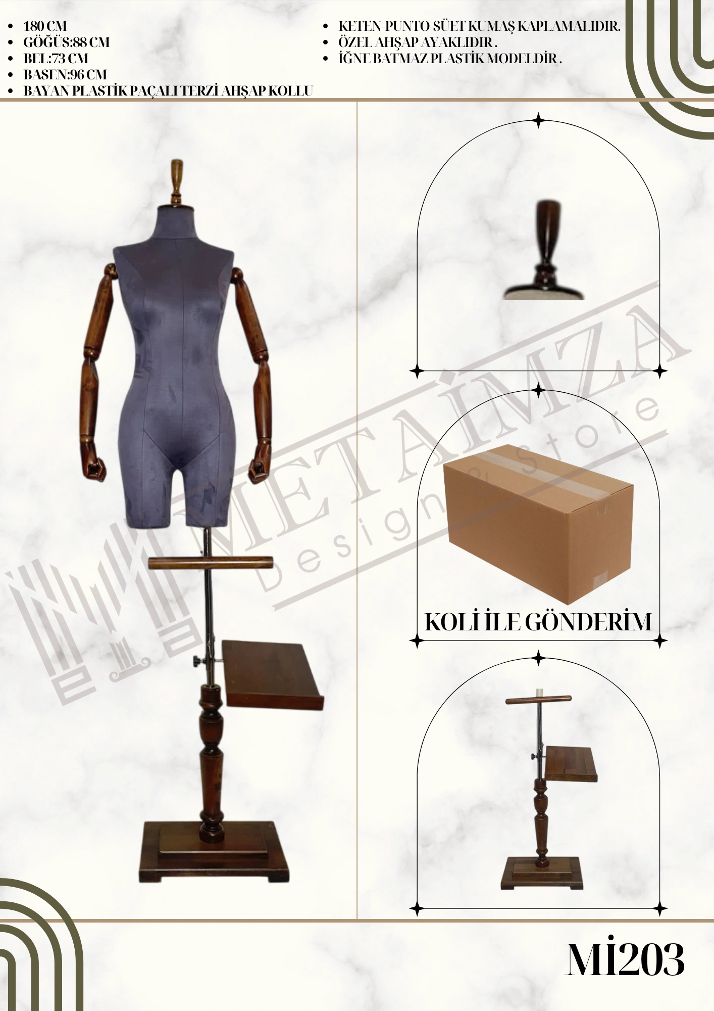 Keten-Punto süet kumaş kaplamalıdır. Özel ahşap ayaklıdır. İğne batmaz plastik modeldir.