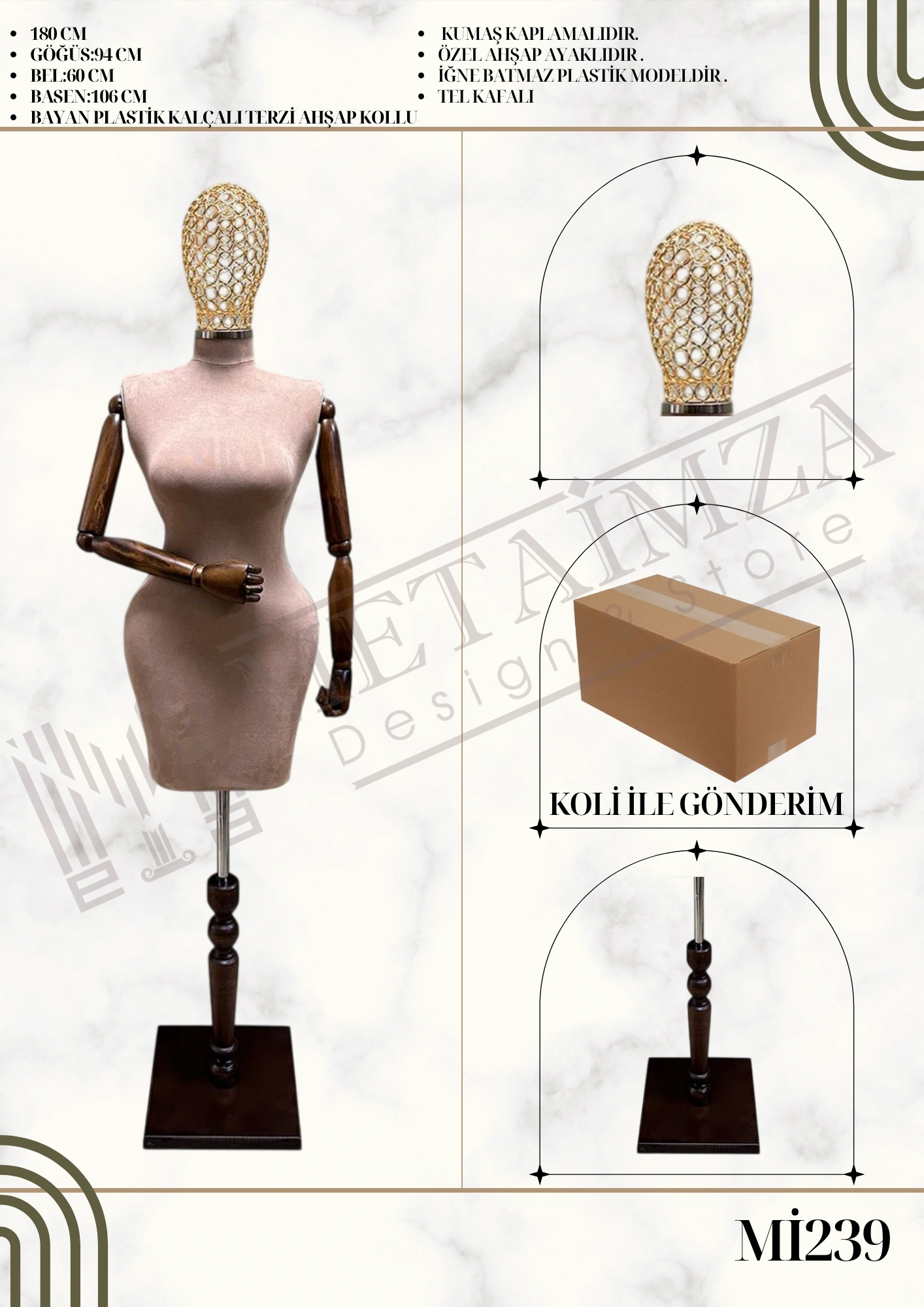 180 cm boyunda, kumaş kaplamalı, özel ahşap ayaklıdır.