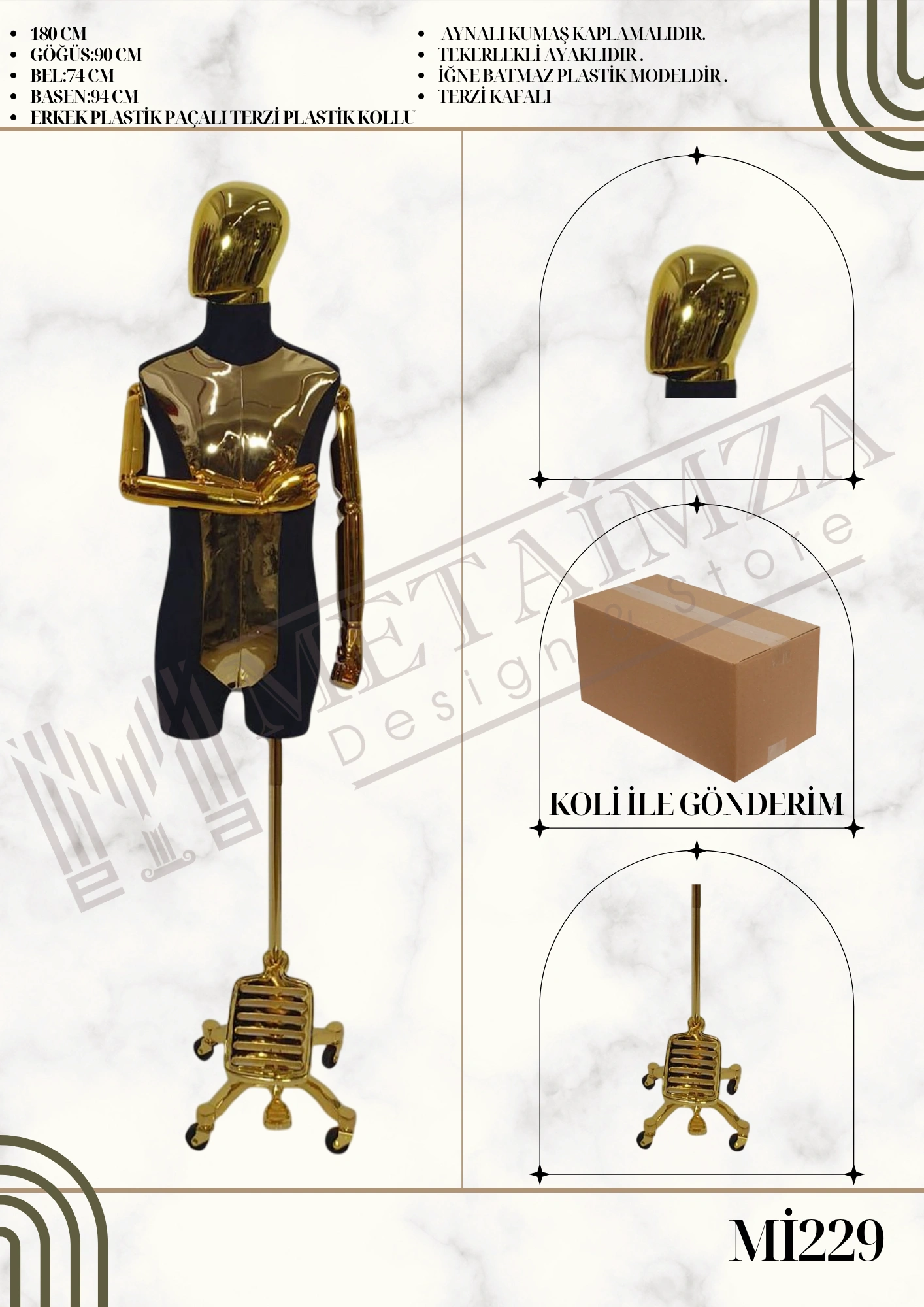 Altın rengi kaplama vitrin mankeni.