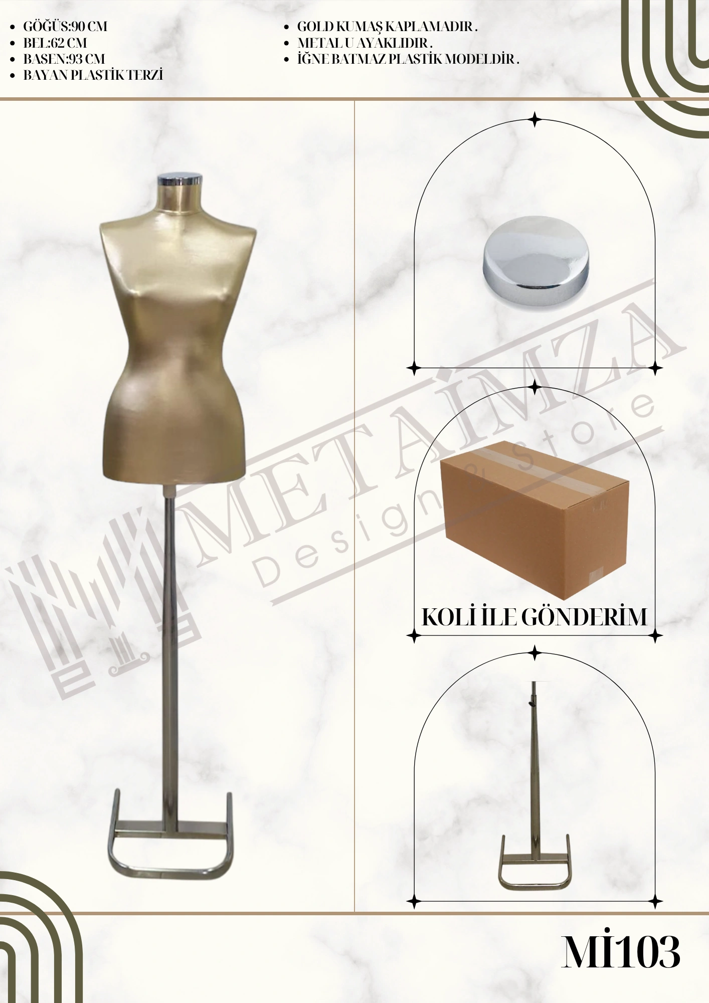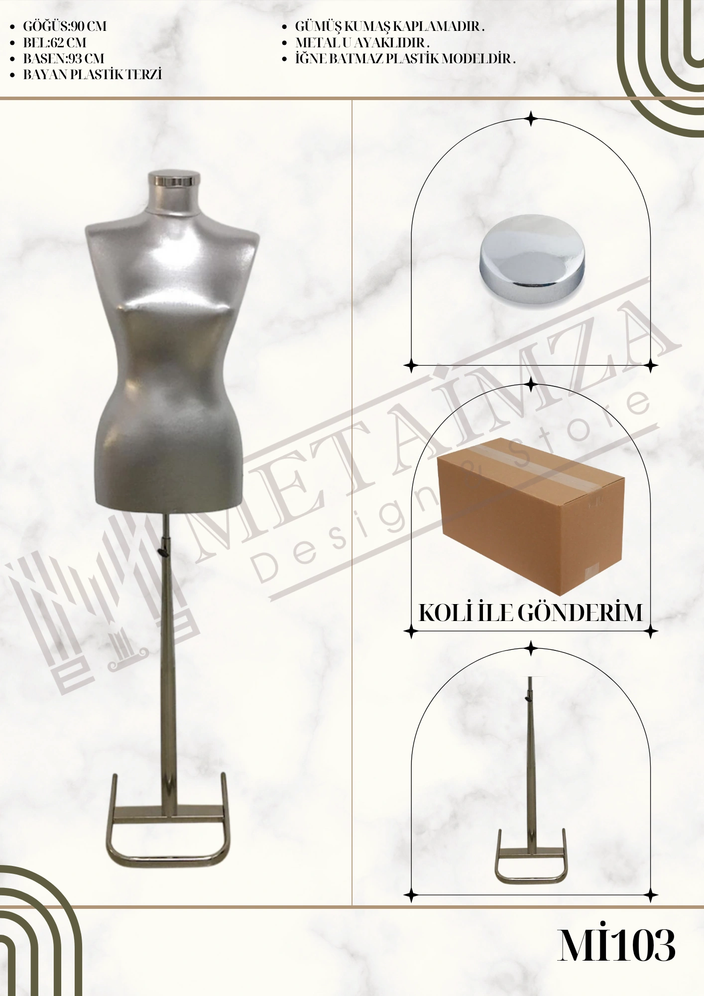 Metalik kumaş kaplamalı, metal U ayaklı, iğne batmaz plastik model.