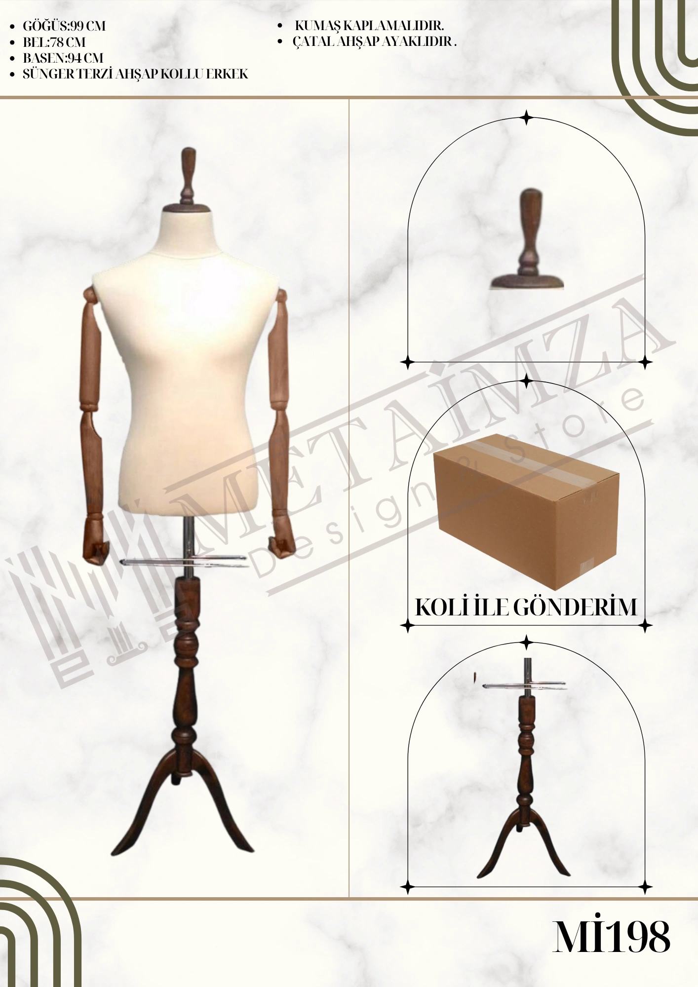 Göğüs:99 Cm, Bel:78 Cm, Basen:94 Cm.